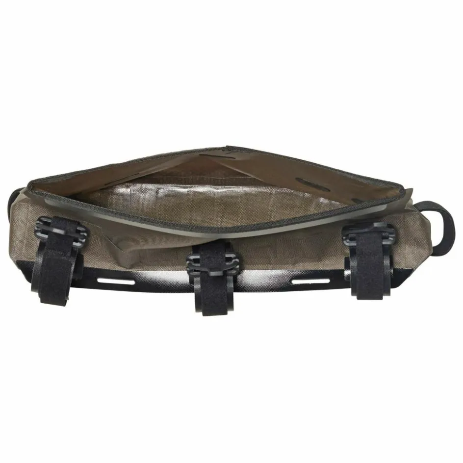 Die wasserdichte Tasche bietet dir 3 Liter Volumen. Sie hat einen schlanken Rollverschluss und individuell positionierbare Gurte mit Klettverschluss. Dank des Rollverschlusses hast du eine großzügige Öffnung zum Beladen der Rahmentasche. Die Befestigungsriemen für das Oberrohr tragen zugleich die elastischen Laschen, mit denen du den Rollverschluss schließt. Das ist durchdacht, robust und langlebig. Das Material ist Ortlieb-typisch robust und abriebfest – und auch PVC-frei. Das Frame-Pack RC Toptube ist auch für Carbon-Rahmen geeignet.