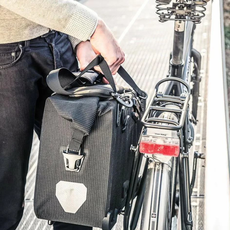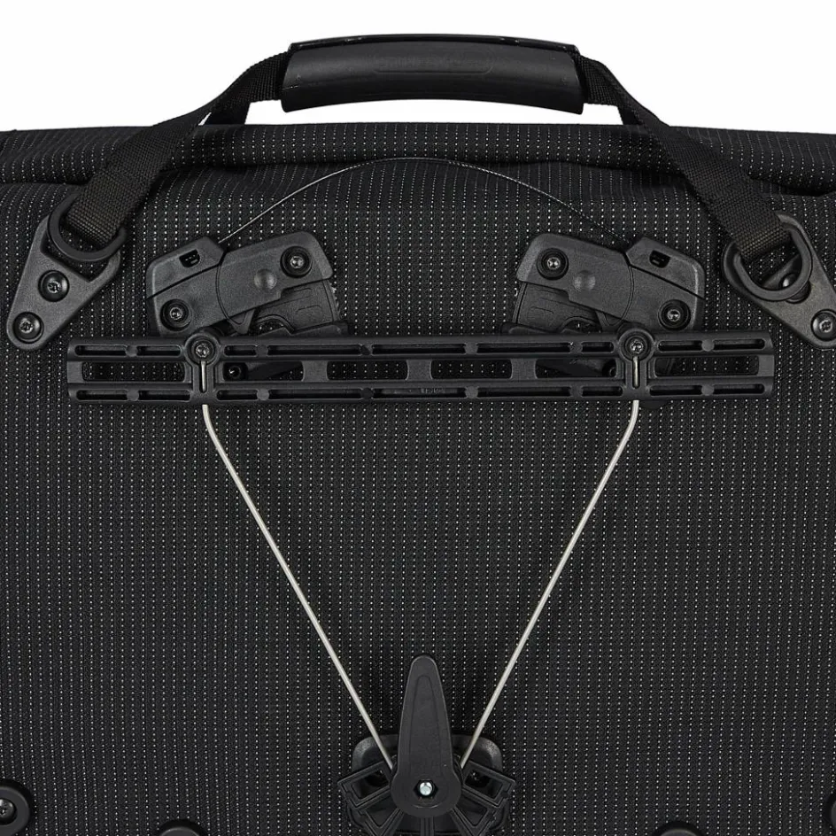 Der Clou bei QL3.1: Die wesentlichen Halterungskomponenten befinden sich am Gepäckträger und nicht an der Tasche. Bedeutet für die Tasche: Flacher Taschenrücken, nichts Hervorstehendes. In der Summe ergibt das ein hervorragendes Handling mit tollem Tragekomfort.