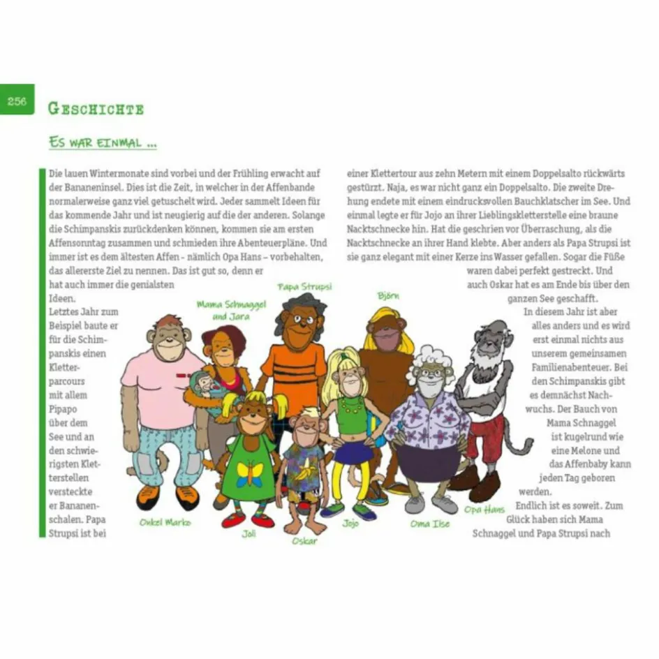 Übungen und Spiele sind thematisch geordnet und durch Inhaltsverzeichnis und Glossar trainingsspezifisch nachschlag- und anwendbar. Mit der Geschichte der Affenfamilie Schimpanski können Kinder- und Jugendtrainer ihre Schützlinge motivieren und die einzelnen Klettertechniken Comic-und Story-gestützt vermitteln.