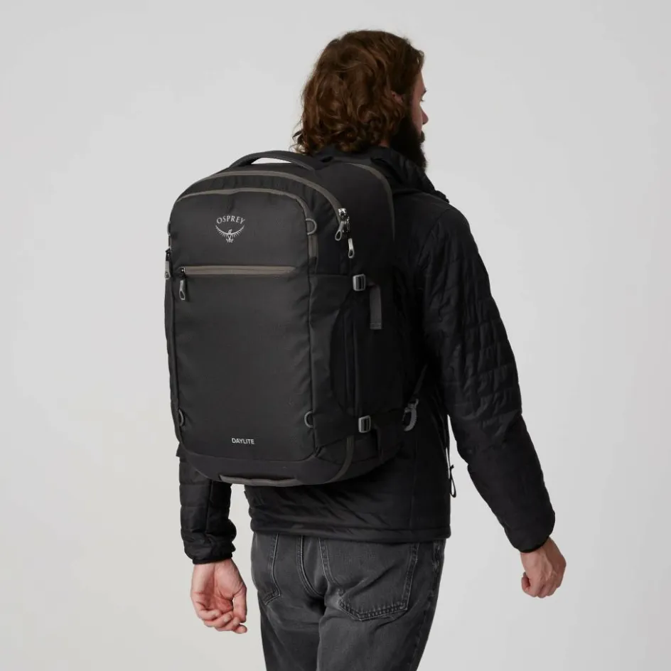 Um möglichst gut in die Gepäckablage oder unter den Vordersitz zu passen, kann sich der Daylite Travel Pack schön schlank machen. Du hakst einfach die Schultergurte aus und verstaust das Tragesystem im eigenen RV-Fach. Reist du noch mit einem Rollkoffer, kannst du den Rucksack dank Durchstecklasche einfach auf den Teleskopgriff aufstecken.