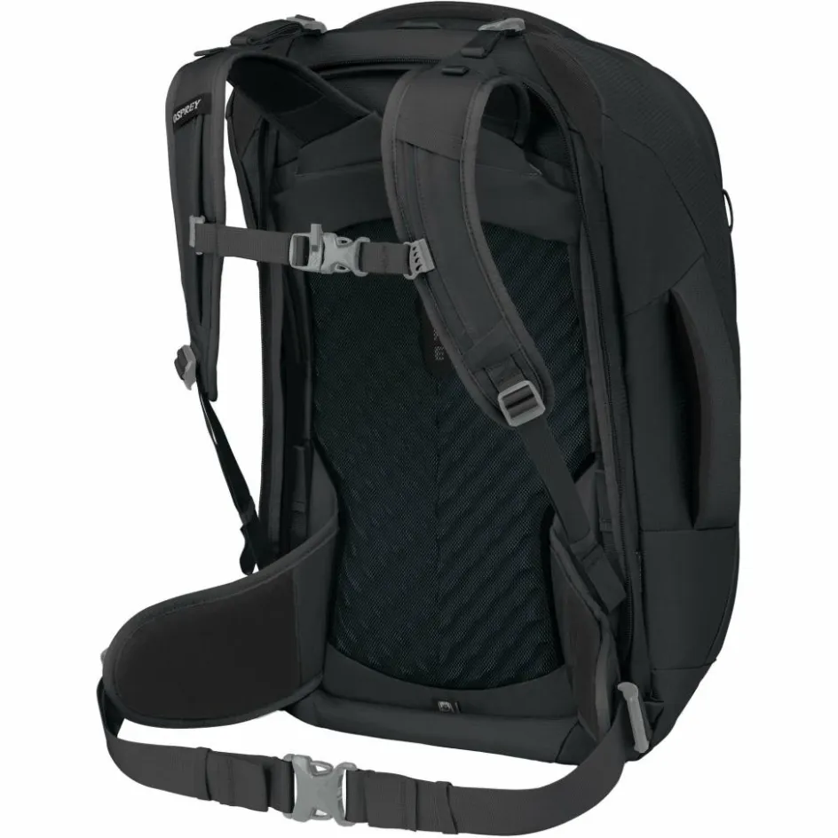 Auch wenn der Fairview ein Hybrid aus Rucksack und Koffer ist: Beim Tragekomfort ist Osprey keine Kompromisse eingegangen. Gut so! Denn auch bei voller Beladung trägt sich der Rucksack noch äußerst bequem. Möglich macht es das Zusammenspiel aus leichtem Aluminiumrahmen, stabiler Rückenplatte und breitem Hüftgurt. Diese sorgen für eine ausgezeichnete Lastenübertragung und hohen Tragekomfort, auch wenn der Weg zur Unterkunft Mal etwas weiter ist.