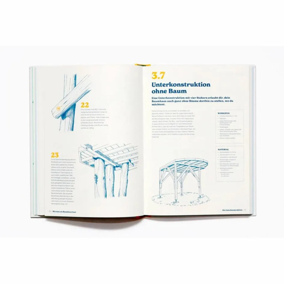 Dieses Buch richtet sich in erster Linie an Eltern, die mit Unterstützung ihrer Kinder ein altersgerechtes Baumhaus bauen wollen. Es ist ein umfassender Leitfaden für die Planung und den Bau des perfekten Baumhauses. Es richtet sich an alle, die den Werkstoff Holz schätzen, gut mit ihm umgehen können und die keine Angst vor dem Umgang mit Werkzeug haben. Wunderschön illustriert und von einem professionellen Baumhausbauer geschrieben, erklärt das Buch, wie man den richtigen Baum auswählt, welche Materialien und Werkzeuge zu verwenden sind und wie man die Plattform, die Wände, den Boden und das Dach baut. Für alle, die etwas mehr Ehrgeiz haben, gibt es Möglichkeiten, besondere Elemente wie Leitern, Rutschen und Kletterwände einzubauen. Das gesamte Buch hindurch gibt es Tipps, wie man Kinder jeden Alters in den Bau mit einbeziehen kann.