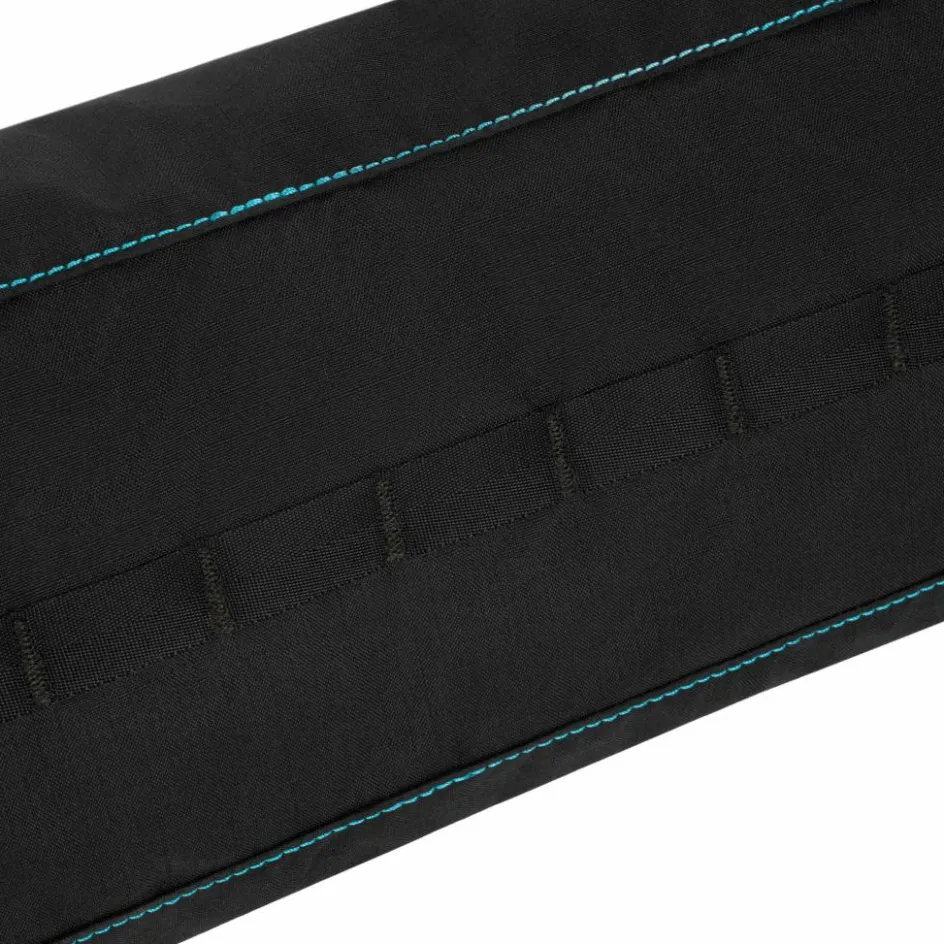 Nach vorne und hinten abgespreizte Füße mit breiten Endkappen verhindern ein Einsinken in den Sand. Der Bezug erlaubt eine gute Belüftung des Rückens und hat eine Fläche mit weichem Klettverschluss auf Kopfhöhe. Stopfst du den Packsack mit ein paar Klamotten aus, kannst du ihn an dieser Stelle befestigen und als Kopfkissen verwenden.