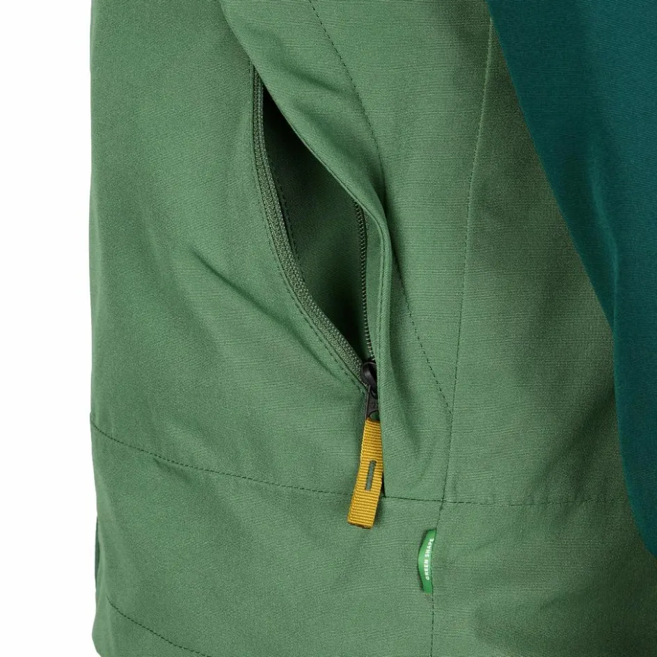 Gegen die Elemente ist die Jacke mit einer Windschutzleiste mit Klettverschluss und einer regulierbaren Kapuze ebenfalls mit Klett ausgestattet. Außerdem ist sie an den Seiten teilelastisch und mit einem Schirm versehen, der Regen aus dem Gesicht deiner Lütten hält. Damit auch über den Saum keine Wärme verloren geht, lässt sich dieser über die Taschen mithilfe eines Schnürzugs einstellen. Die beiden Reißverschlusstaschen sind zudem mit weichem Mikrofleece ausgestattet und gönnen kalten Kinderhände eine Pause vom schneidenden Wind.