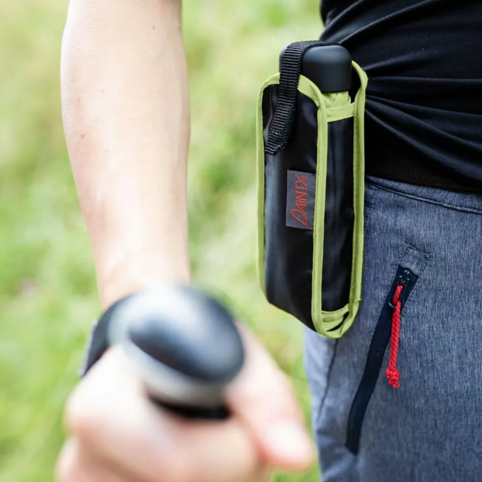 Der ABS-Griff ist mit einer latexfreien Senosoft-Oberfläche versehen. Obwohl der Griff recht klein ist, so liegt er doch sicher in der Hand. Benötigst du ihn nicht mehr, kannst du ihn in der mit Fixierschlaufen versehenen Nylon-Hülle verstauen und am Rucksack befestigen.