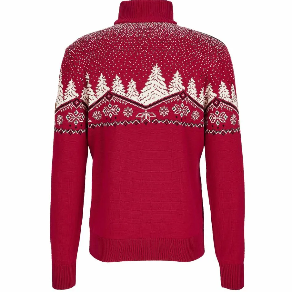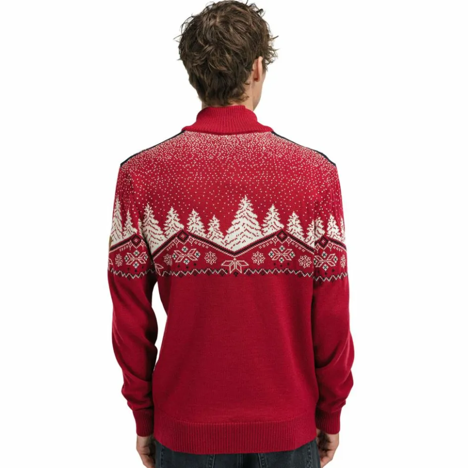 Mit seinem wirklich tollen Design passt der Sweater ideal in die Weihnachtszeit. Die beiden Rentiere vor der winterlichen Kulisse mit leichtem Schneegestöber versprühen die ideale Stimmung und passen perfekt in die kalten Monate. Auch norwegische Tradition ist auf dem Dale Sweater zu finden in Form der traditionellen achblättrigen Rose, die im Zentrum des Pullovers ihren Platz gefunden hat.