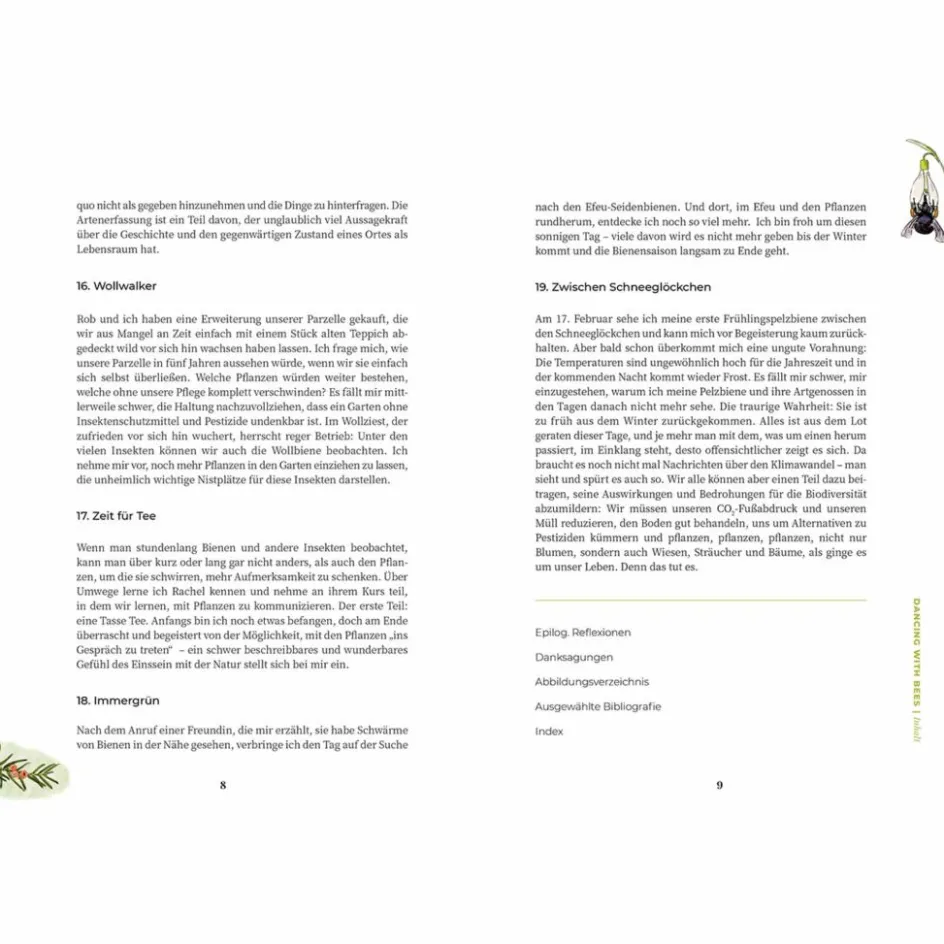 Voll Lust zur Veränderung nimmt die Autorin dich mit auf ihre eigene Reise zurück zur Natur, vorbei an Hänge-Birken, Dunklen Erdhummeln und Feldlerchen – und zeigt, wie sie ihre Begeisterung für Bienen entdeckte. Gepackt beginnt sie damals zu recherchieren. Sie erfährt, dass es mindestens 20.000 verschiedene Bienenarten auf unserem Planeten gibt, von denen nur neun zu den uns geläufigen Honigbienen zählen. Neugierig darauf, welche der summenden Tiere sich wohl in ihrem eigenen Garten tummeln, taucht sie immer tiefer in das Thema ein. Und stoßt auf Fragen, die uns alle mehr denn je betreffen: Welche Geheimnisse verbergen sich hinter dem überraschenden Verhalten der Bienen und anderer Bestäuber? Welche Bedeutung hat die Artenvielfalt für unser aller Dasein? Was sind die Auswirkungen des Klimawandels auf unsere Umwelt?