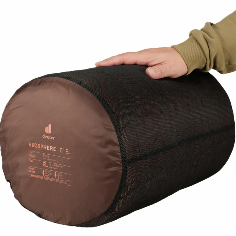 Für kalte Temperaturen bis 0°C. Der Exosphere -6° EL ist ein Kunstfaserschlafsack für Personen bis 200 cm Größe, der durch die elastischen Nähte ermöglicht viele Schlafpositionen einzunehmen.