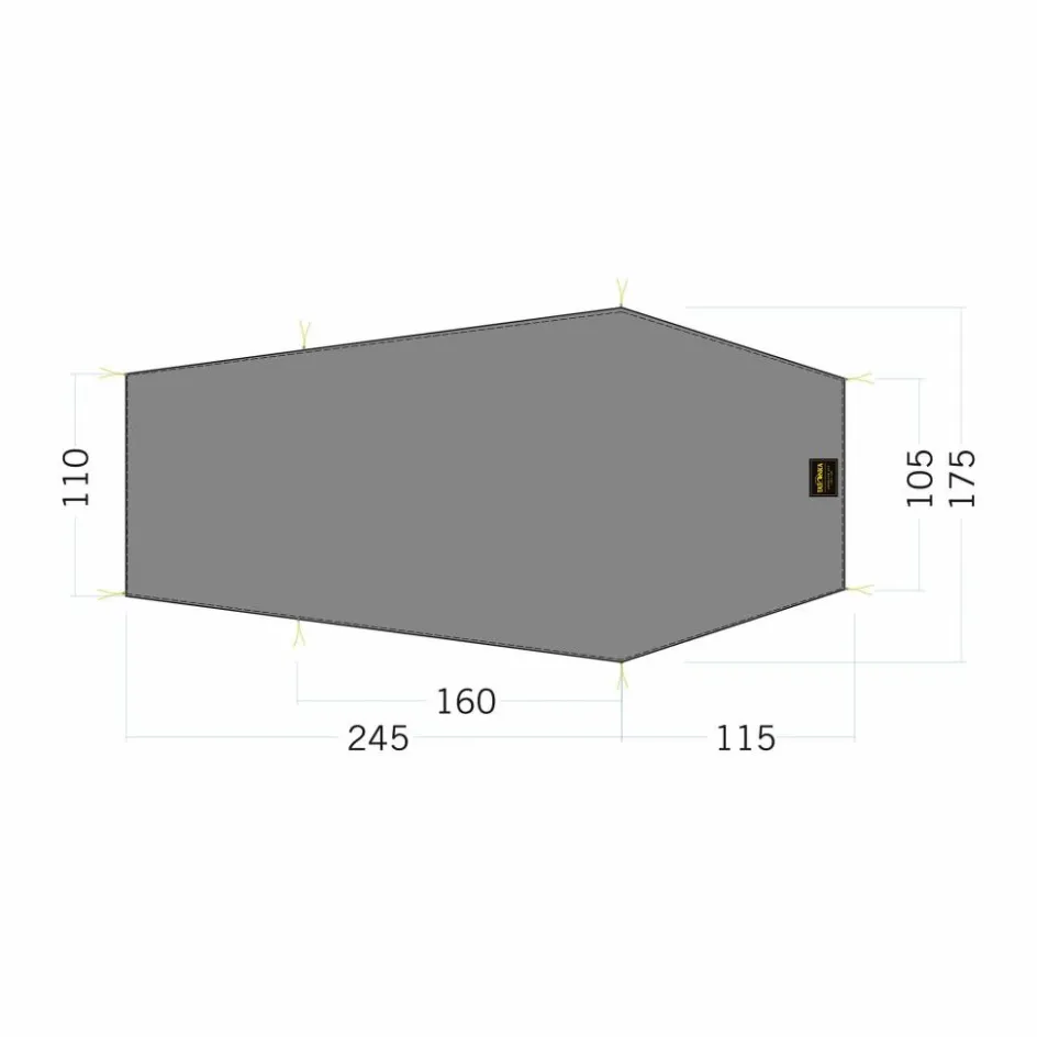 Die Unterlage ist passend für das gesamte Zelt, einschließlich der Apsis, und schützt den Zeltboden vor Schmutz, Beschädigungen und kondensierender Bodenfeuchtigkeit.
