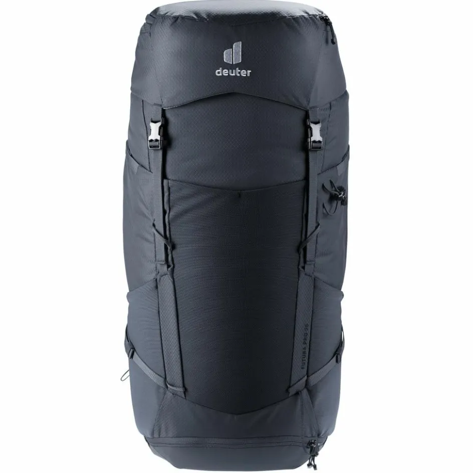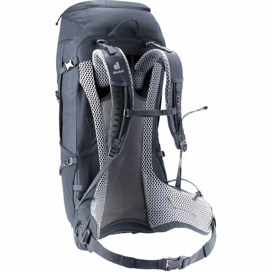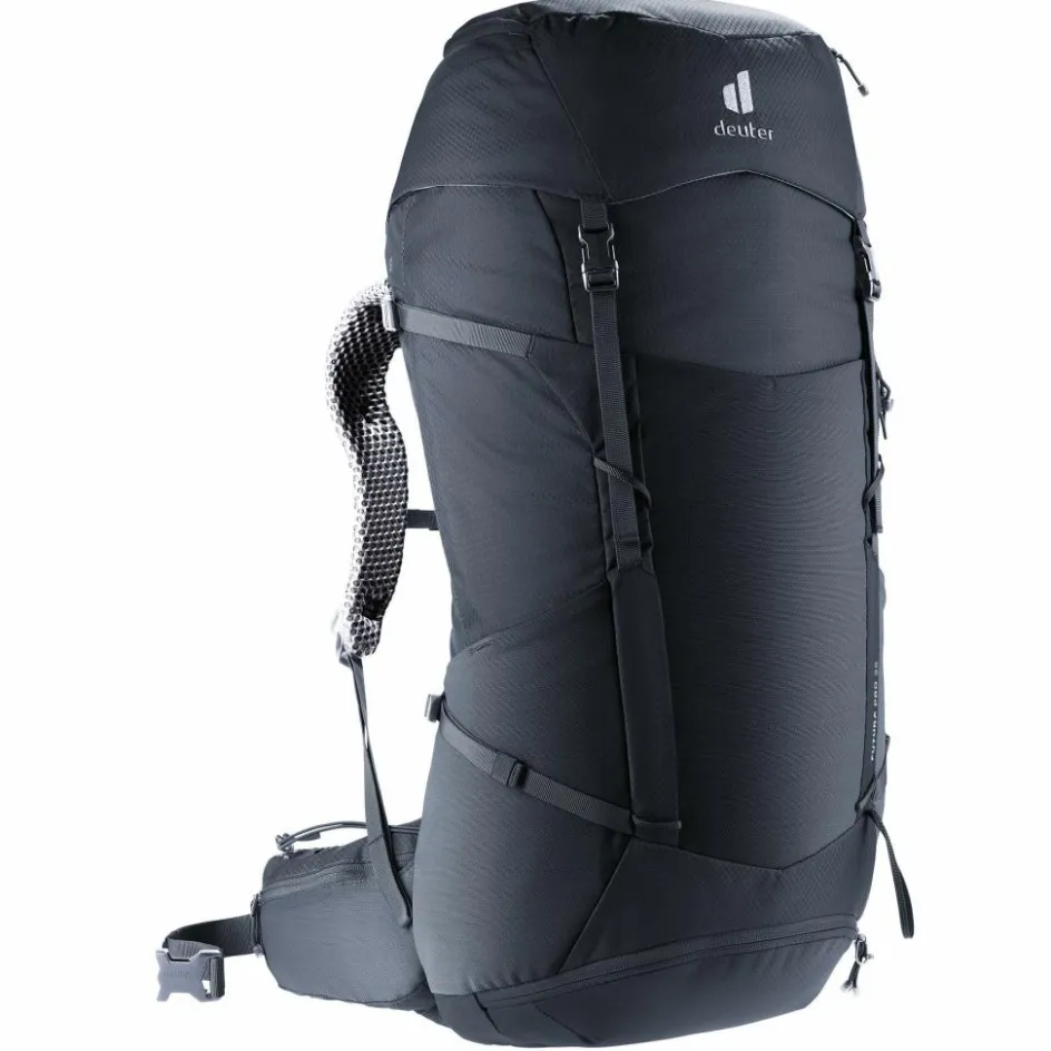 Wie auch sein Vorgänger punktet der neue Futura Pro mit einem elastischen Federstahlrahmen, der das Gewicht des Rucksacks auf deine Hüften überträgt und so für größtmöglichen Tragekomfort sorgt. Das Rückenpolster geht nahtlos in den Hüftgurt über, vermeidet dadurch Druckpunkte und schmiegt sich weich an deine Hüften an. Und dank der ergonomischen Form der ActiveFit Schultergurte macht der Rucksack auch auf bewegungsintensiven Touren – zum Beispiel beim Einsatz von Trekkingstöcken – jede deiner Bewegungen problemlos mit.