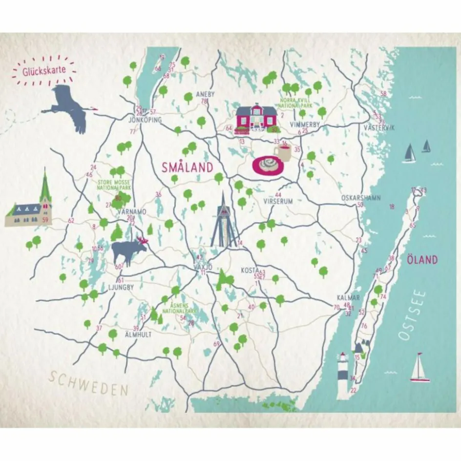 Hej und välkommen in den unendlichen Wäldern Smålands und auf der Sonneninsel Öland! Neben Elchparks und Seen, gemütlichen Cafés und Fischrestaurants wimmelt es von mittelalterlichen Burgen, zeitlosem Design und Glaskunst. Ob auf dem Postboot durch den Schärengarten, beim Gartenspaziergang durch den königlichen Sommersitz oder bei einer Zeitreise im historischen Schienenbus – hier ist die Welt wirklich, wie sie jedem gefällt.