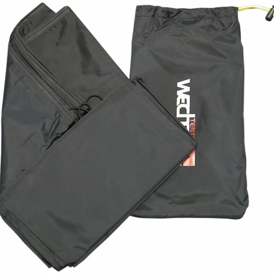 Deckt die gesamte Fläche ab (Innenzelt + Apsis). Die Gummischlaufen dienen zum Aufbau als klassische Zeltunterlage. Die Ösen und Clips eignen sich für die Aufbauvariante ohne Innenzelt, bei der nur die Zeltunterlage und das Außenzelt aufgestellt werden.