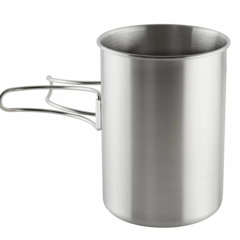 Großer Becher mit 850 ml Volumen, den du dank der robusten Ausführung auch als Topf verwenden kannst. Die klappbaren Handgriffe reduzieren das Packmaß auf ein Minimum.