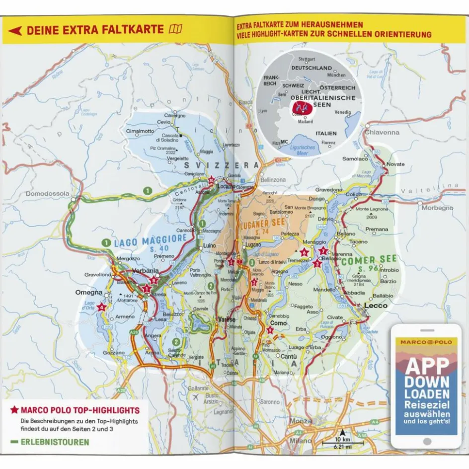 Mit MARCO POLO erlebst du die faszinierende Region von ihrer schönsten Seite und verlierst dank Highlight-Karten und Faltplan nie den Überblick! Genieße die Seen wie die Locals mit den MARCO POLO Insider-Tipps für einzigartige Urlaubsmomente Ohne langes Suchen zu allen Highlights der Region: mit den MARCO POLO Erlebnistouren und der kostenlosen Touren-App