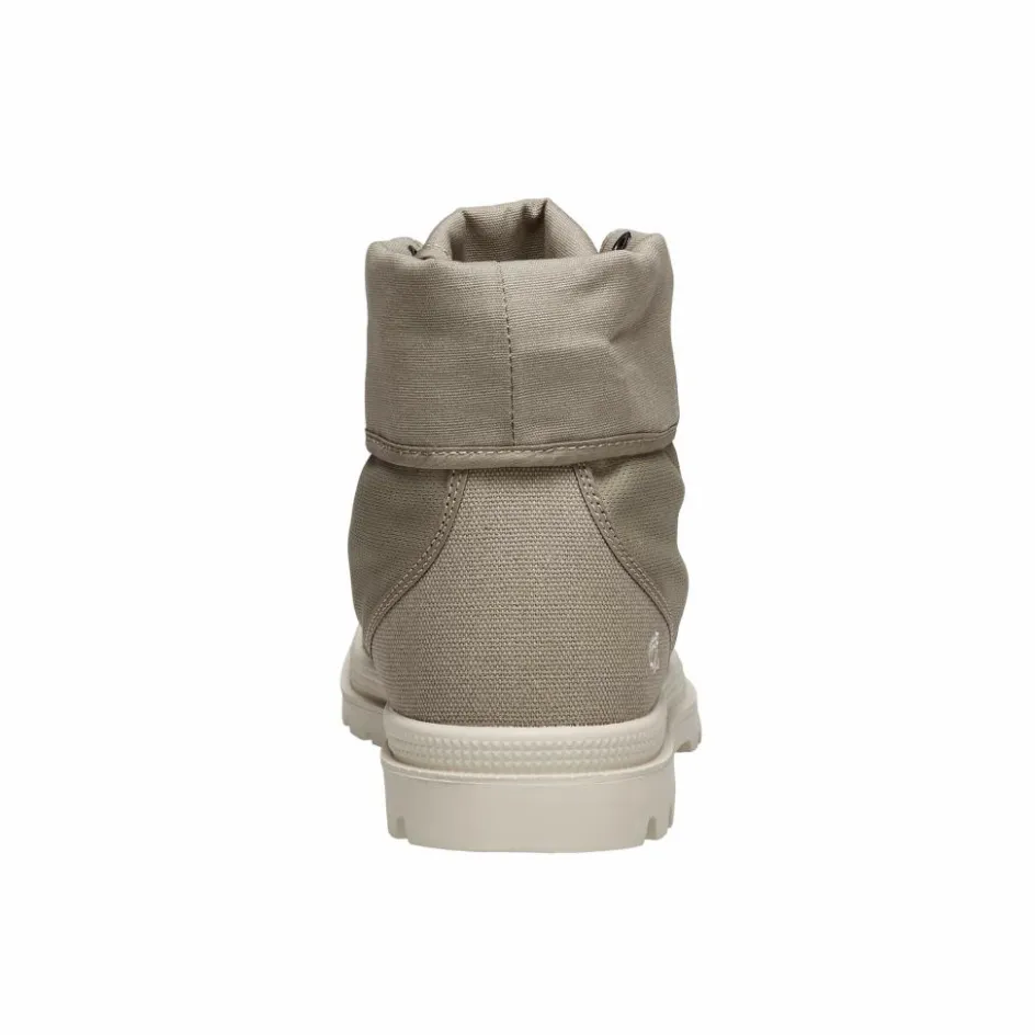 Denn dieser bietet dir gleich mehrere Vorteile. Hoch geklappt und geschnürt bietet der Stiefel besseren Schutz. Für Wanderungen in der Savanne oder ähnlichen Gefilden, bei denen durchaus noch mit trockenen, häufig mit Dornen besetztem Gestrüpp zu rechnen ist, ist das ideal. Wird das Gelände trockener und sandiger, aber auch im urbanen Raum, kannst du den Schaft herunterklappen und mittels Druckknöpfen fixieren.