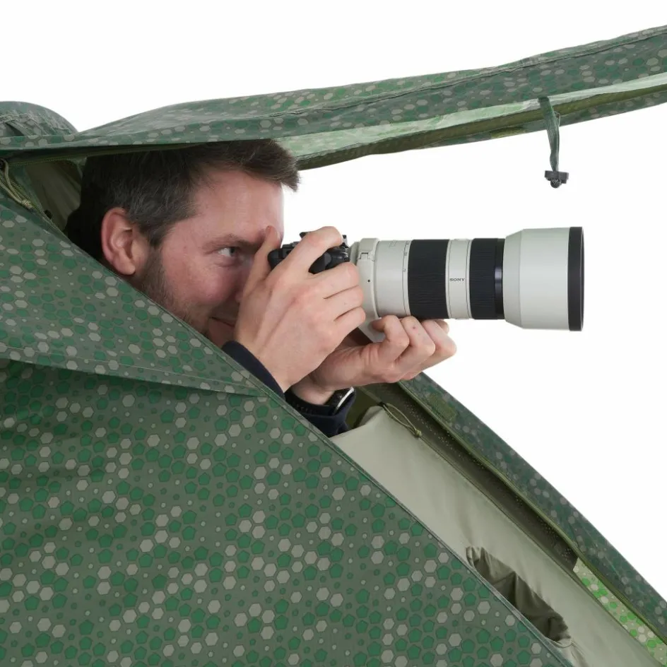 Das Pathfinder Stealth richtet sich an alle Naturbeobachter und Fotografen. Neben der unauffälligen Zeltfarbe besitzt das Modell auch einen zusätzlichen Fronteingang mit Linsenöffnung.