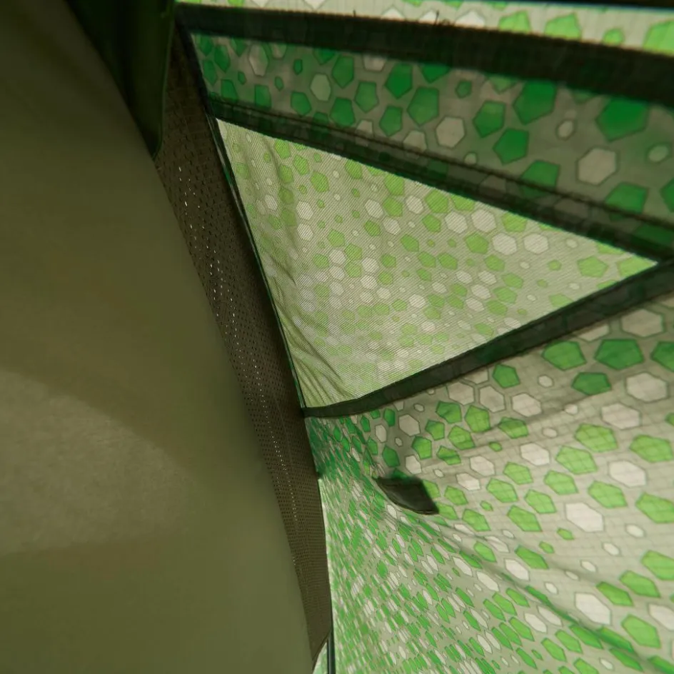 In der Apsis kannst du dein Gepäck und die Schuhe recht bequem unterbringen. Die Tür lässt sich weit öffnen und aufrollen. Das erleichtert dir das Ein- und Auspacken deiner Ausrüstung ins Innenzelt. In diesem geht es geräumig weiter. Mit 70 bis 97 cm Breite hast nicht nur du, sondern bei Bedarf auch dein Trekkingrucksack Platz. Der große Lüfter im Innenzelt sorgt für gute Belüftung in der Nacht.