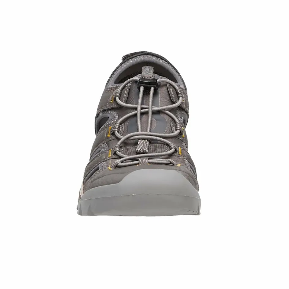 Denn sie bietet dir dank ihrer griffigen Gummi-Profilsohle nicht nur abseits asphaltierter und betonierter Wege Grip, sondern obendrein eine tolle Passform und zuverlässigen Schutz. Während du die Passform der speziellen Machart und dem verarbeiteten Schnellschnürsystem zu verdanken hast. Für Schutz sorgt dabei die annähernd geschlossene Zehenbox. Dank dieser haben es fiese, spitze, kleine Steinchen deutlich schwerer ins Innere der Sandale zu gelangen.