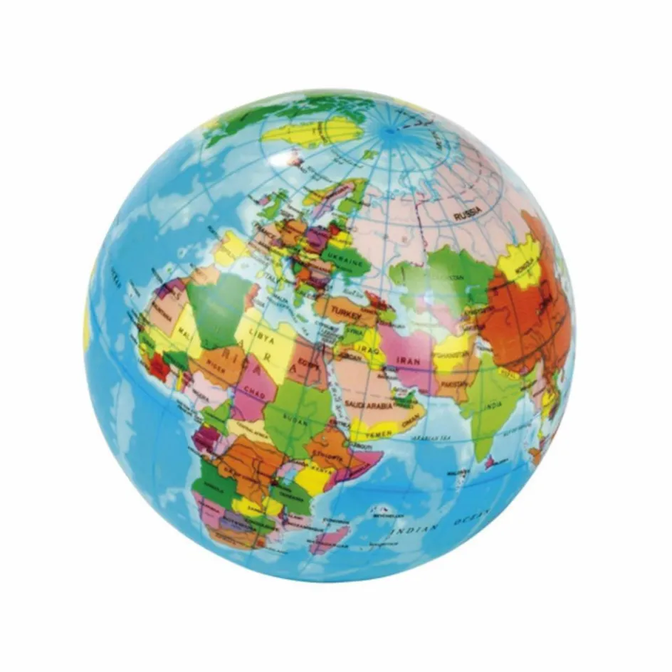 Schöner Weltkugel-Springball aus weichem Kunststoff mit politischer Weltkarte (englische Beschriftung).