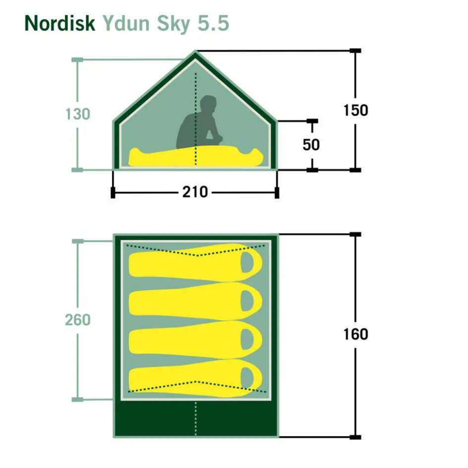Der Aufbau des Ydun Sky gestaltet sich ebenfalls unkompliziert. Zwei Stangen sowie viele Abspannpunkte sorgen für eine stabile Beschaffenheit. Der Vorteil hierbei: Da es keine Mittelstange gibt, lässt sich der Innenraum perfekt ausnutzen.