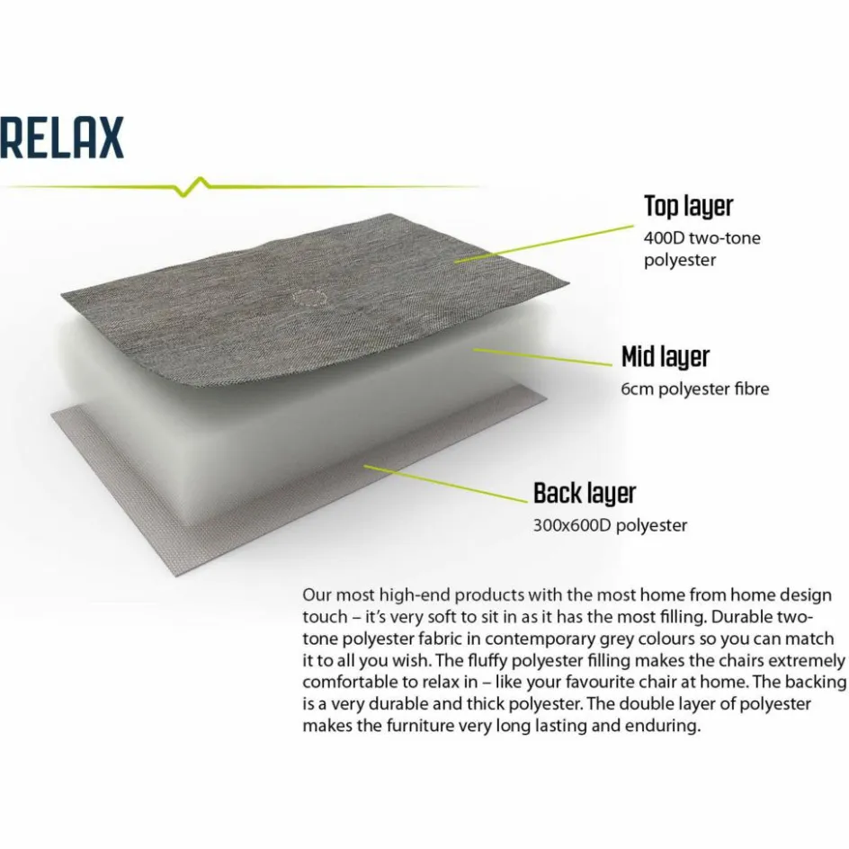 Die breiten Armlehnen aus Kunststoff sind eine bequeme Ablage für deine Arme. Dank der Rückenlehne mit 65 cm Höhe hat auch dein Kopf eine angenehme Stütze. Die Polsterung hält Rücken, Gesäß und Oberschenkel auch dann warm, wenn die Luft am Abend eines warmen Tages abkühlt und es merklich frischer wird. Mit dem Yellowstone Lake kannst du also im Urlaub rundum entspannen.