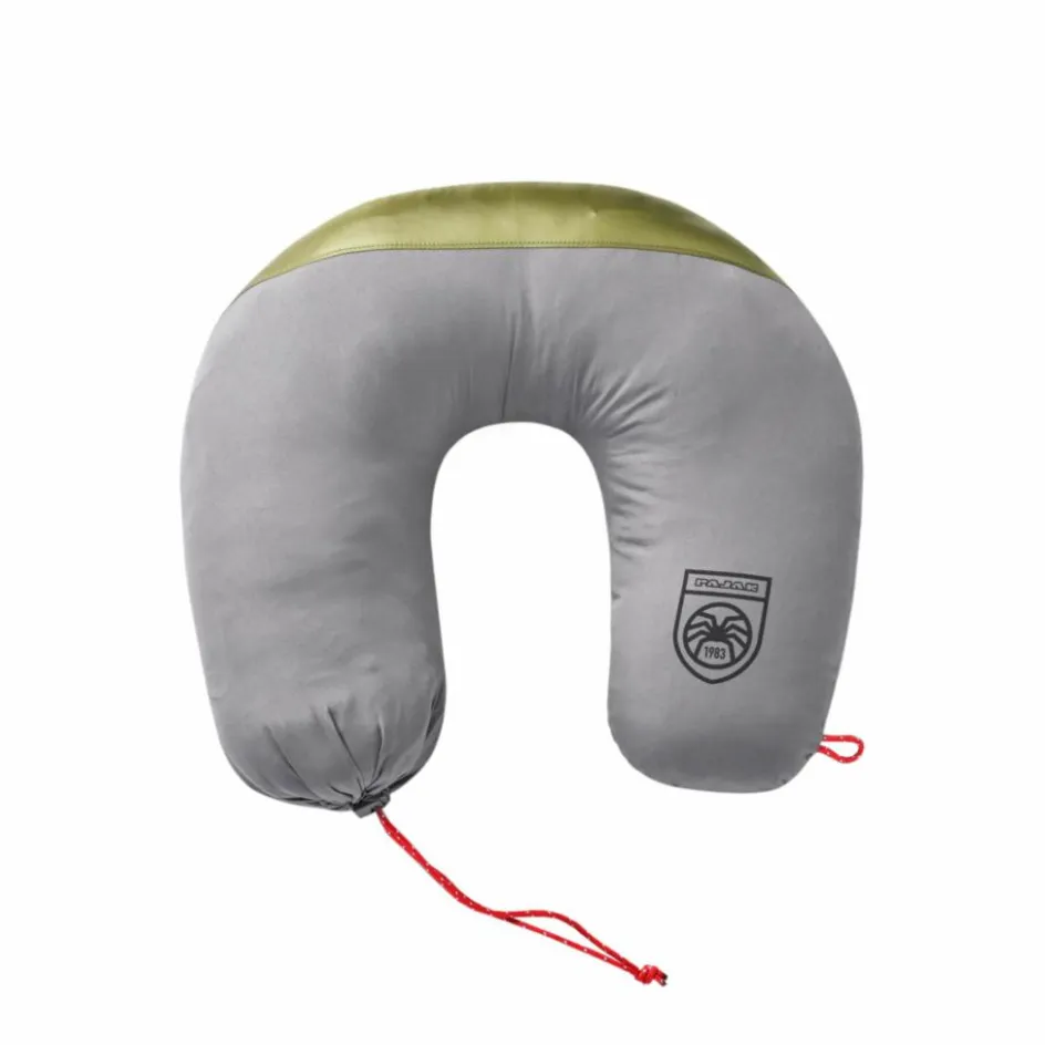 Für die Bahnfahrt oder den Flug bietet der Packsack ein praktisches Extra: Er lässt sich hörnchenförmig ausfalten und dient, befüllt mit der Decke oder Kleidung, als stützendes Nackenkissen.