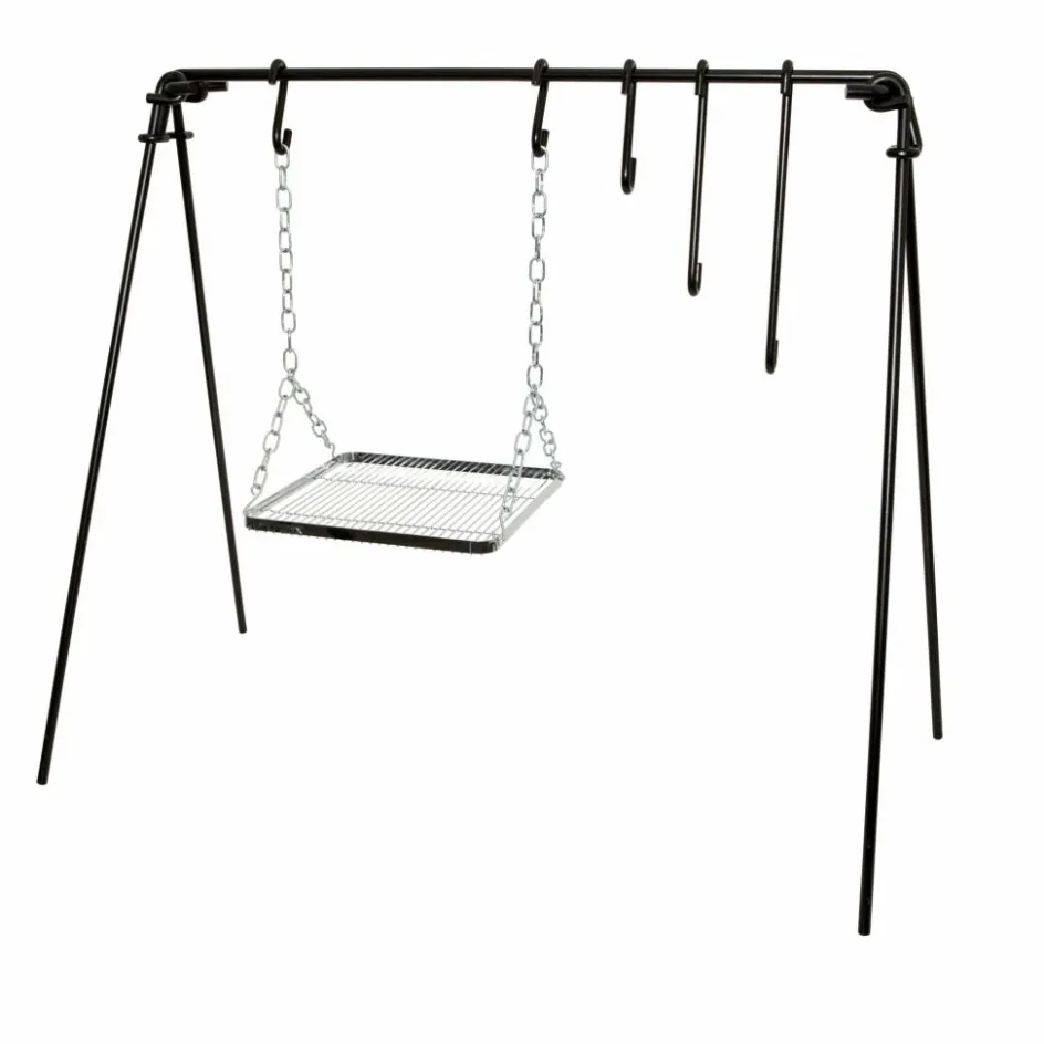 Während ein Dreibein nur Platz für einen Topf bietet, erhältst du mit der Feuerbrücke eine ganze Kochstelle. Drei Haken in unterschiedlichen Längen und ein Grillrost ermöglichen es dir, mehrere Speisen und Getränke gleichzeitig zuzubereiten.
