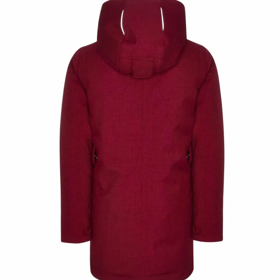 Das hübsch melierte Außenmaterial hat einen angenehm weichen Griff. Da würde man erstmal gar nicht vermuten, dass das Material genau so dichthält wie eine waschechte Regenjacke! Der recht lange Schnitt hält den Po schön warm und trocken. Auf Taillenhöhe befinden sich ein Riegel und Druckknöpfe, mit denen du die Jacke in der Weite anpassen kannst. Reflektierende Designelemente erhöhen die Sichtbarkeit in der dunkeln Jahreszeit.
