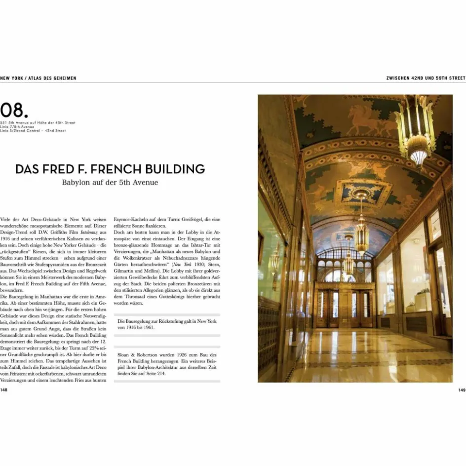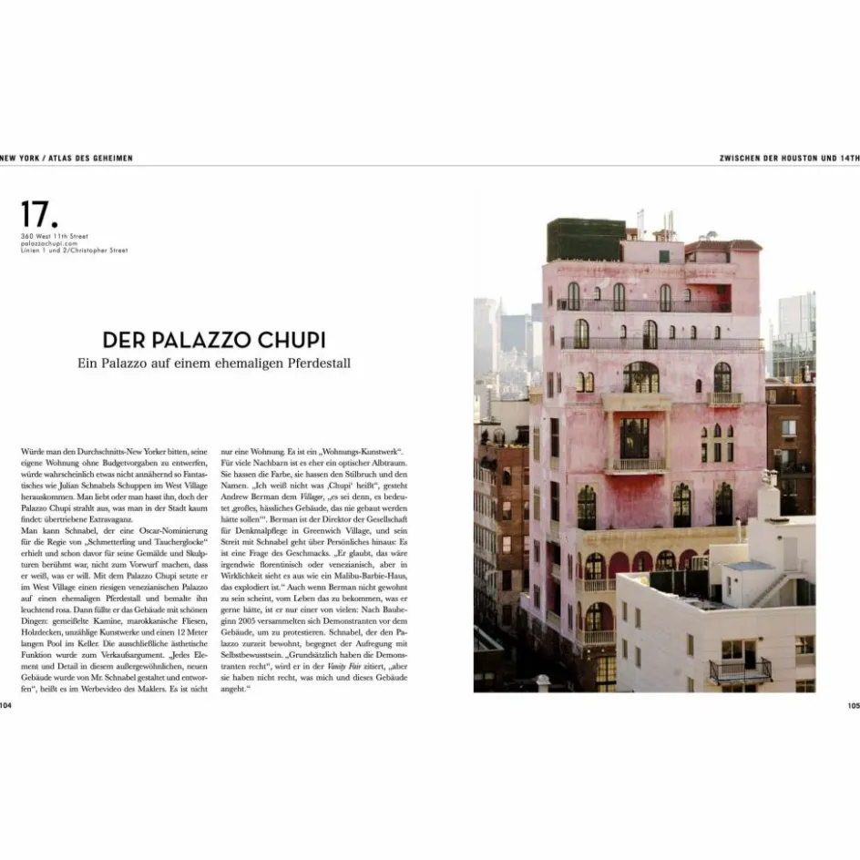 Ein unentbehrlicher Atlas für alle, die glaubten, New York wie ihre Westentasche zu kennen, und für diejenigen, die eine ganz andere Seite dieser faszinierenden Stadt entdecken wollen. Bewundere in einer Kirche einen apokalyptischen Pfeiler, entdecke verborgene Gärten, finde die Einschlaglöcher an der Fassade der Bank J. P. Morgan, stoße auf eine Lenin-Statue sowie den Ort, an dem Marilyn Monroe ihren Rock fliegen ließ.