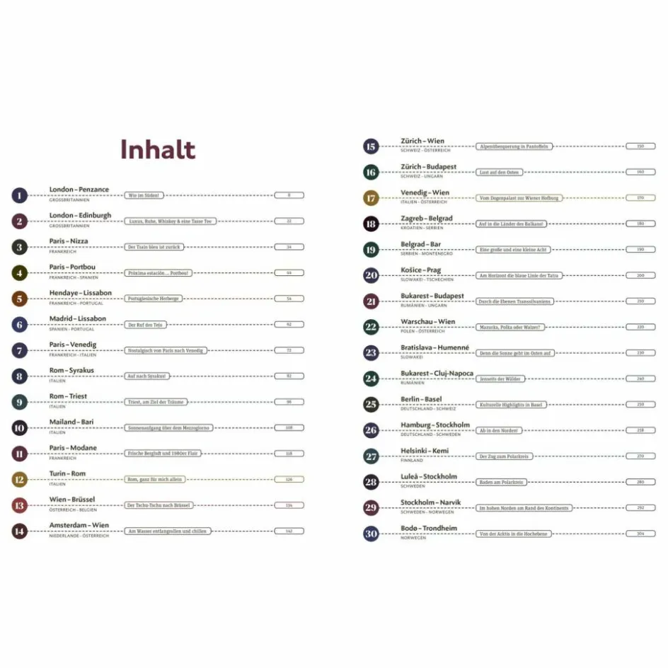 Einfach einsteigen, ausgeschlafen am Reiseziel ankommen und drauf los entdecken! Zugreisen über Nacht haben viele Vorteile und zählen zu den komfortabelsten Art, Europa zu bereisen. Dieses Buch ist Reisebericht, toll bebilderte Inspirationsquelle und Reiseführer in einem und präsentiert einzigartige Touren quer durch Europa. Als Ausgangs- und Endpunkt dienen sowohl beliebte Städte wie Wien oder Paris, als auch unbekannte Destinationen wie Bar in Montenegro oder Bodo in Norwegen.