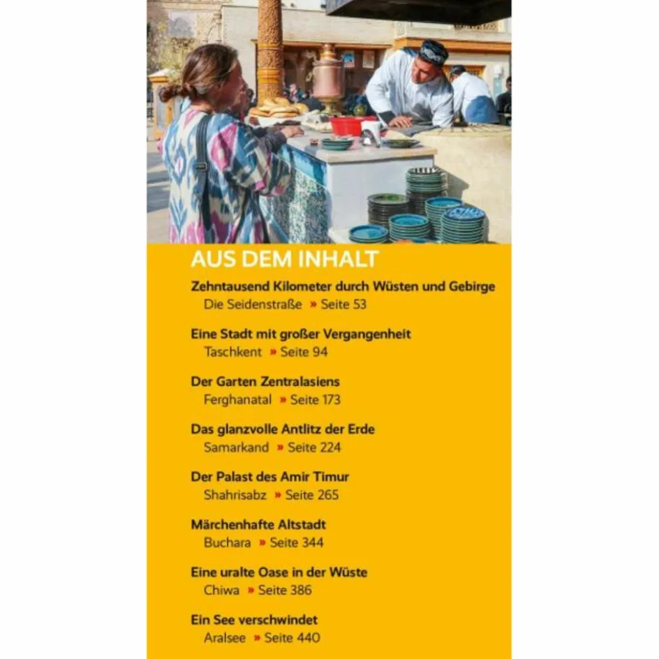 Die Autoren des Trescher-Reiseführers Usbekistan, Irina und Bodo Thöns, leben im Land und kennen es wie ihre Westentasche. Alle Regionen und ihre Sehenswürdigkeiten werden von ihnen umfassend beschrieben, auch die abseits der touristischen Routen. Landeskundliche Kapitel führen ein in Geografie und Natur, beleuchten Geschichte und Kultur, die Traditionen und den Alltag der Menschen. Empfehlungen für Hotels, Jurtencamps, Restaurants und Basare, viele Stadtpläne, ein herausnehmbarer Faltplan sowie ausführliche reisepraktische Tipps ergänzen diesen allseits zuverlässigen Wegbegleiter.