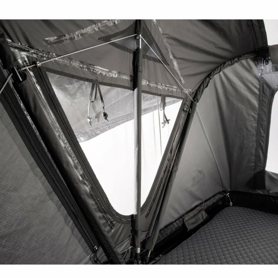 Das Roof Space 2 verfügt darüber hinaus aber über weitere Vorzüge: Da wäre zum Beispiel die besonders robuste Konstruktion des Transportkoffers, der aus Aluminium und Edelstahl besteht. Da wäre aber auch der tolle Panorama-Modus, der bei gutem Wetter den Anblick beim Aufwachen zu einem echten Erlebnis machen kann.
