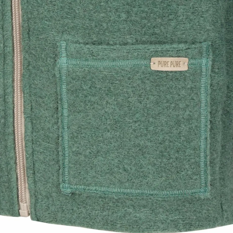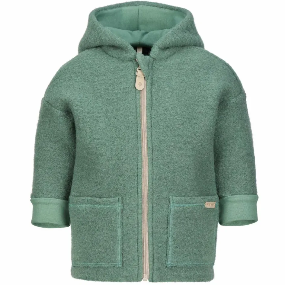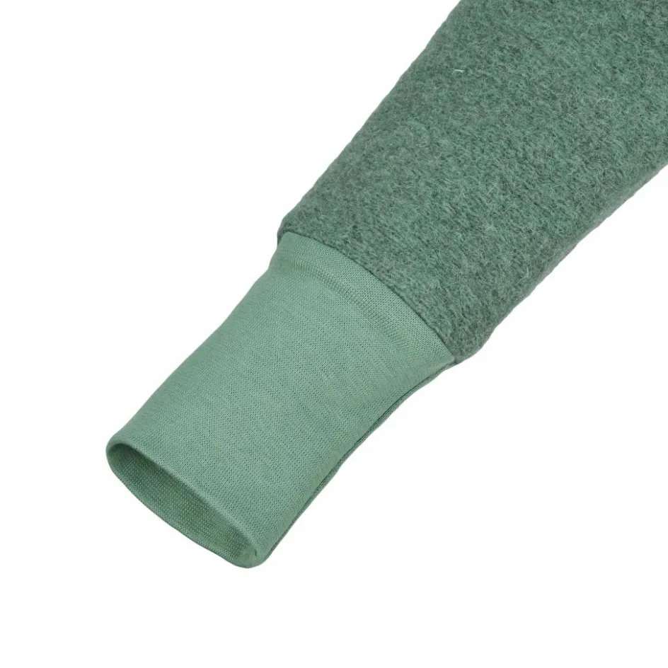 Die angenehm leichte, weiche Jacke ist aus nachwachsenden Naturfasern hergestellt, und zwar aus weicher Schurwolle und Bio-Baumwolle. Dank der Schurwolle wirkt die Jacke temperaturausgleichend. So bleiben die Kinder an kühlen Herbst- und Frühjahrstagen angenehm warm, sie überhitzen aber auch nicht, wenn sie sich viel bewegen. Zudem wirkt Wolle feuchtigkeitsleitend und wärmt auch dann noch, wenn sie im Regen einmal feucht geworden ist. Der Anteil an Bio-Baumwolle sorgt für einen besonders weichen Griff. Durch das gewalkte Material hält die Jacke schön warm und ist außerdem recht strapazierfähig.