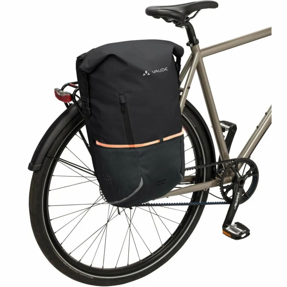Die urbane CityGo Bike 23 II Fahrradtasche verwandelt sich bei Bedarf in einen vollwertigen Rucksack. So trägst du ihn bequem durch die Gegend. Die kombinierte Radtasche/Rucksack ist aus Recylingmaterial.