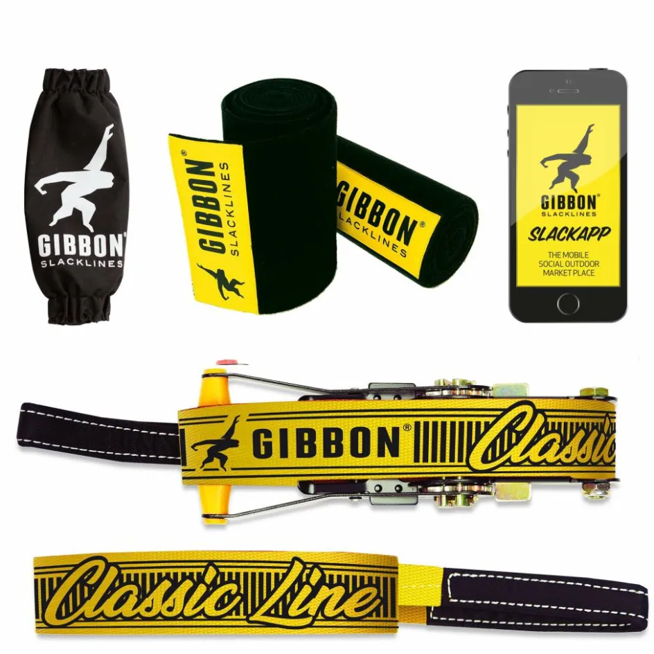 Gibbon Slackline 15 m, Baumschoner, Ratsche mit Rücksicherung, Ratschenschutz und Anleitung.