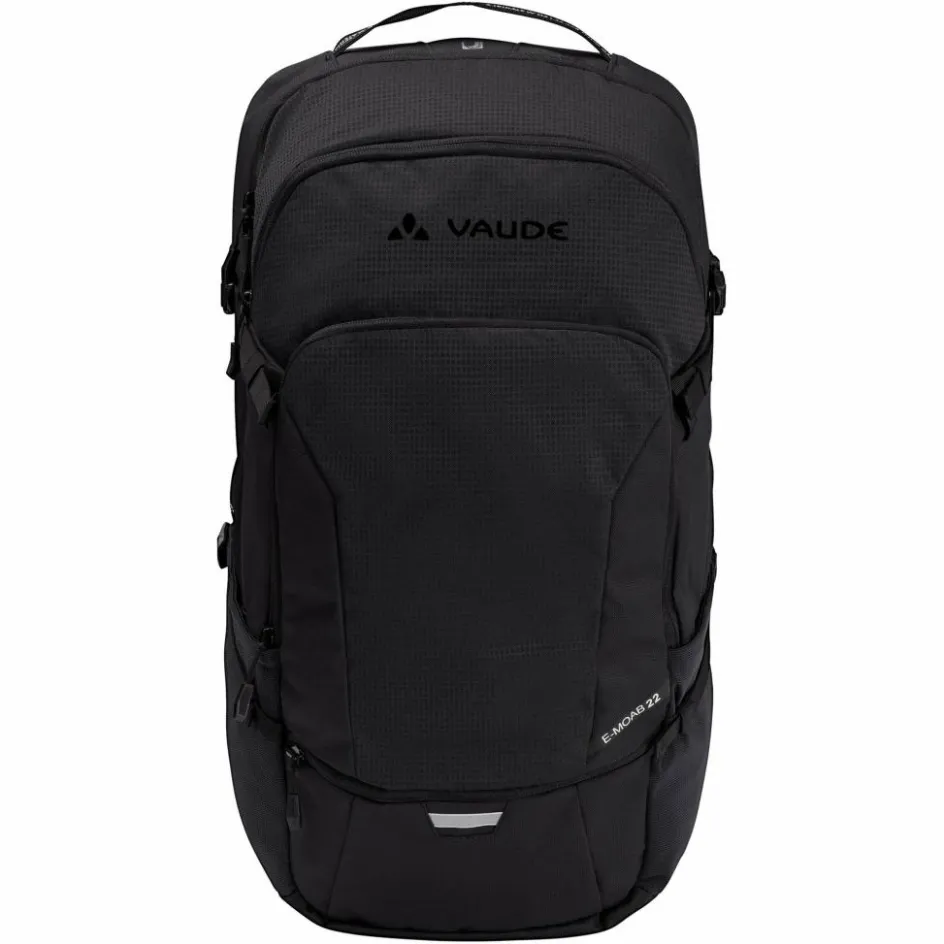 Willst du für verschiedene Wetter- und Pannenfälle gerüstet sein, ist der eMOAB 22 ideal, denn er bietet insgesamt 22 Liter Volumen, zwei Steckfächer außen und viele Organizerfächer innen. So hast du im Notfall alles schnell griffbereit. In das RV-Hauptfach passen Trinksystem, Regenjacke und Verpflegung. Dort gibt es außerdem ein Fach für einen Akku bis einer Länge von maximal 48 cm. Das mittlere Fach verfügt über ein kleines gepolstertes Fach, in dem du bei einer Pause beispielsweise das Display aufbewahren kannst. Flickset, Luftpumpe und Schlauch finden ihren Platz im Frontfach. Die Helmhalterung kann bei Nichtgebrauch ebenfalls im Frontfach untergebracht werden.