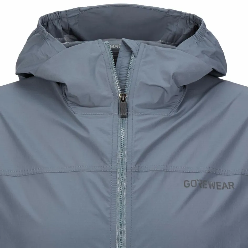 Auch am Schnitt wird deutlich, dass der Fernflow Hooded Windbreaker für das Fahrrad gemacht ist: Das Gore Wear Kinetic Garment Design sorgt für eine optimale Passform, wenn du die Jacke auf dem Bike in einer vorgelehnten Radfahrposition trägst. Der ergonomisch sinnvolle und komfortable Schnitt wird schnell deutlich, wenn du bei deiner Anprobe eine Fahrrad-Position simulierst. Die funktionelle Passform überzeugt sowohl auf dem Bike als auch im Alltag.