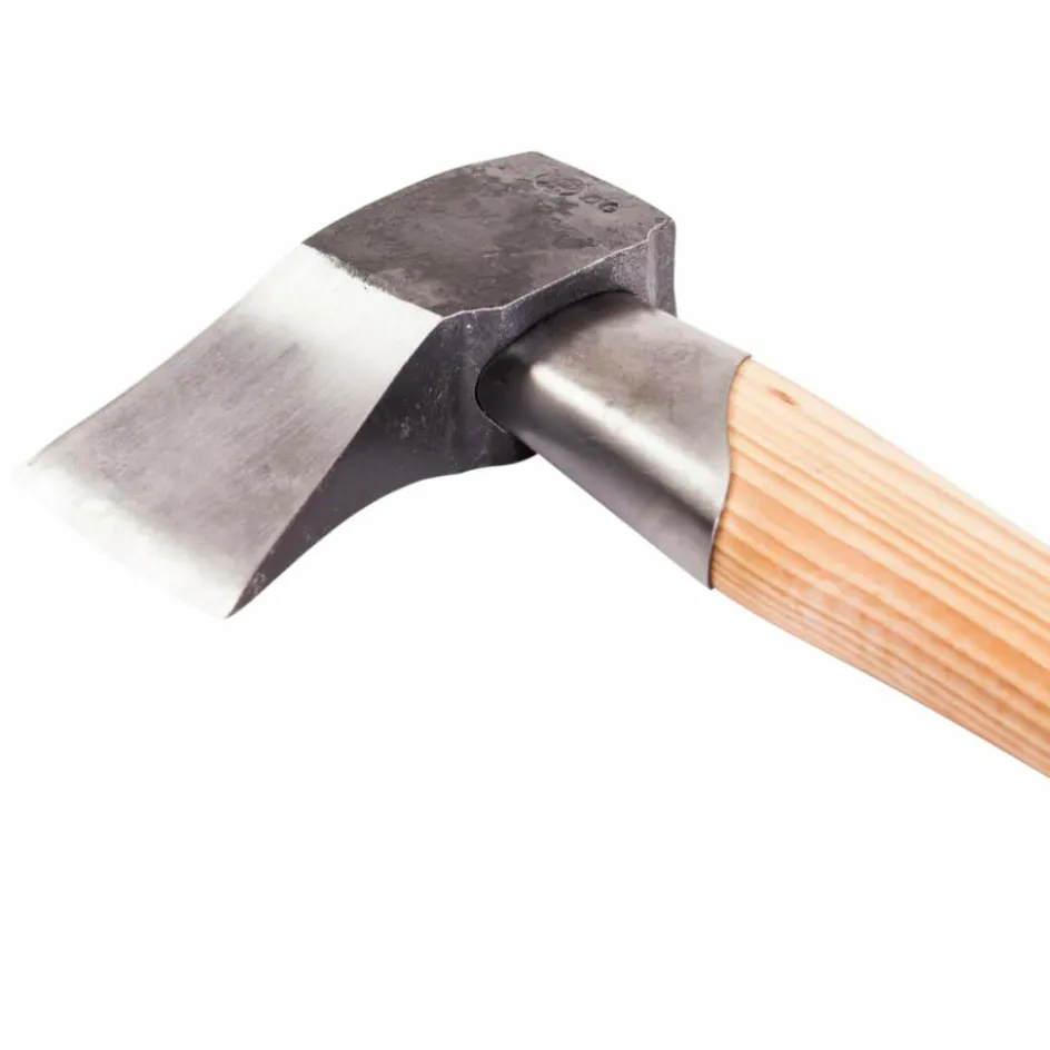 Diese Spaltaxt (2,3 kg) ist mit einem Stielschutz aus Stahl ausgestattet. Das untere Ende des Schaftes ist gröber gearbeitet, um einen sicheren Halt zu garantieren. Trotz ihrer Größe ist die Spaltaxt nicht dafür geeignet, um Keile einzuschlagen oder als Keil verwendet zu werden. Es besteht die Gefahr, das Öhr zu verbiegen und die Spaltaxt damit irreparabel zu zerstören. Um Keile einzuschlagen, greifst du daher zum Spalthammer (s. Zubehör).