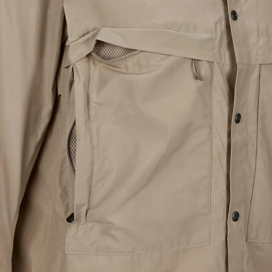 Die Hoja Rider’s Wind Jacket M ist aus wind- und wasserabweisendem HC-Lite gefertigt. Die Funktion des Materials kannst du beeinflussen, indem du zusätzlich Fjällräven-Wachs einarbeitest. Das erhöht die wind- und wasserabweisende Funktion des Windbreakers.