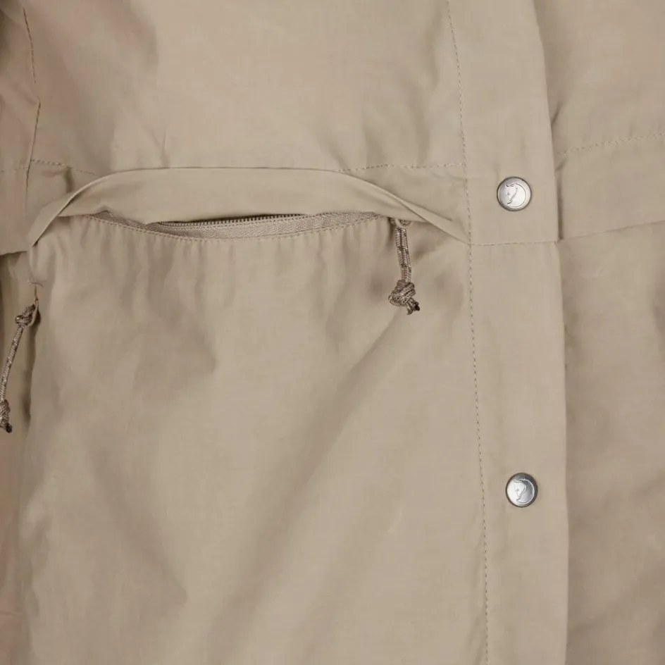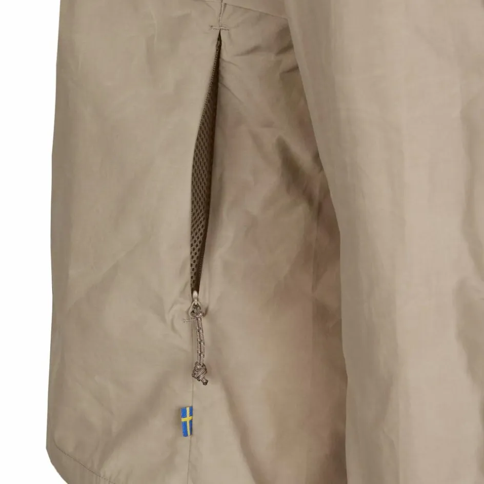 Die Hoja Rider’s Wind Jacket W ist aus wind- und wasserabweisendem HC-Lite gefertigt. Die Funktion des Misch-Materials aus Nylon und Baumwolle kannst du beeinflussen, indem du zusätzlich Fjällräven-Wachs einarbeitest. Das erhöht die wind- und wasserabweisende Funktion des Windbreakers.