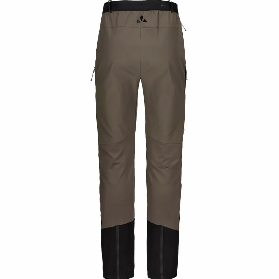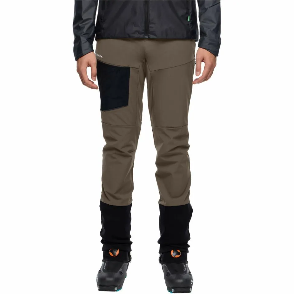 Die Softshellhose kann mit einem robusten Materialmix aus recyceltem Polyamid und dehnbarem Elasthan aufwarten. Ihr Kontrastmaterial auf der Rückseite der Beine sowie dem Zwickel im Schritt setzt ebenfalls auf Elastizität, aber auch auf einen weichen Griff. Die besonders beanspruchten Beinabschlüsse sind mit strapazierfähigem Cordura verstärkt.