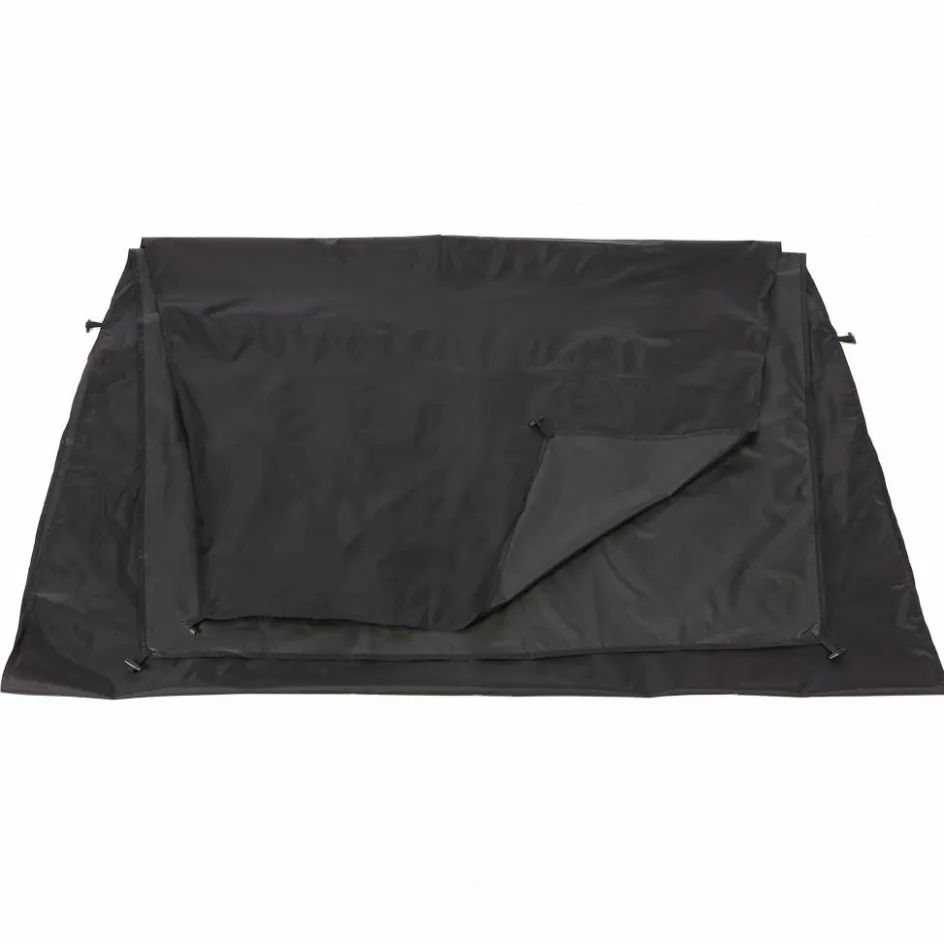 Footprint aus strapazierfähigem, wasserdichtem und PU-beschichtetem Nylon. Entspricht dem kompletten Grundriss des Zeltes (inklusive Apsis). Befestigt wird die Unterlage mit Knebelknöpfen.