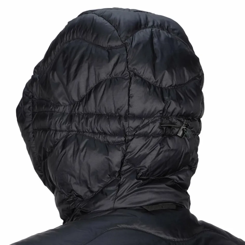 Elastische Bündchen an den Ärmelabschlüssen und am Saum verbessern den Sitz und halten die Wärme im Innern. Mit ihrem geringen Gewicht (300 g) und ohne dick aufzutragen trägt sich die Jacke auch unter einer Wetterschutz-Jacke sehr angenehm. An trockenen, kühlen Tagen ist sie perfekt und sehr stilvoll auch als äußere Lage. Und auch mit ihrem kleinen Packmaß weiß die Down Hood Jacket zu überzeugen und nimmt im Gepäck nur wenig Platz ein.