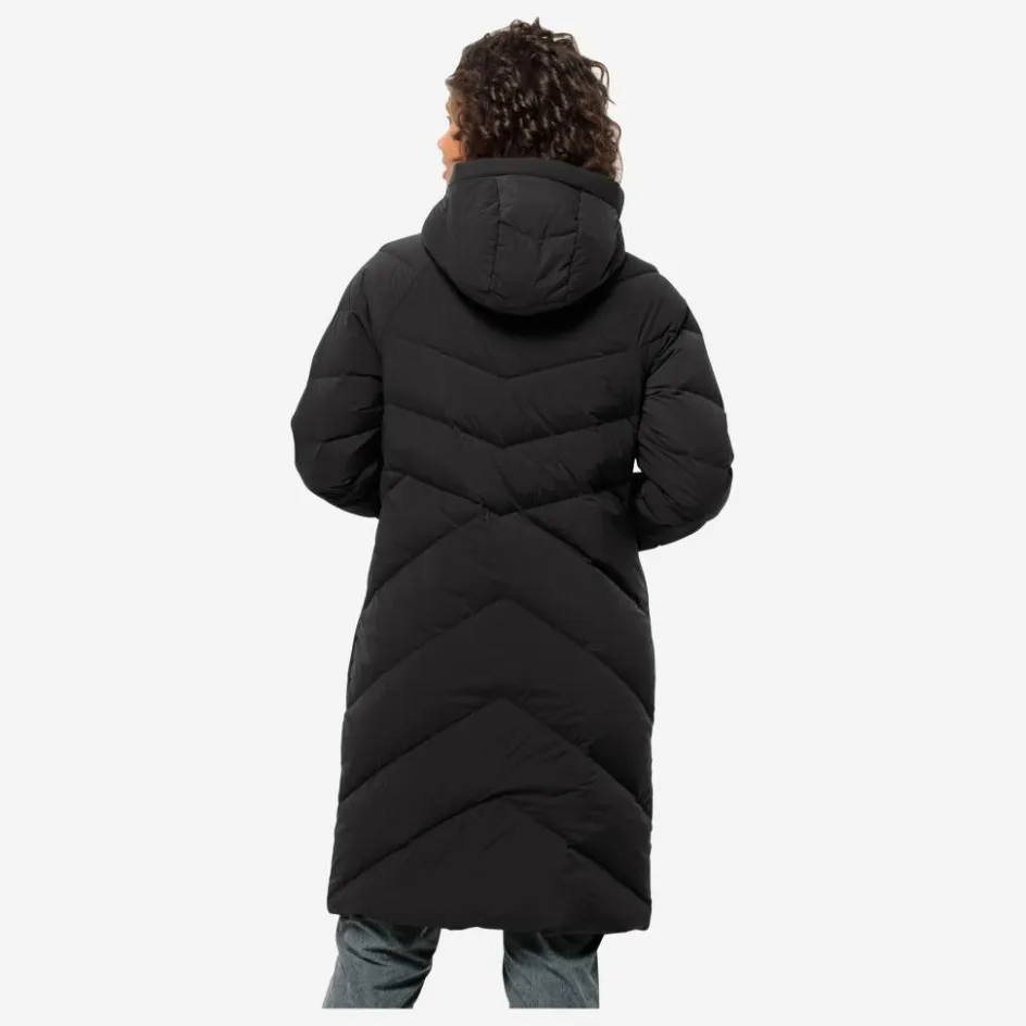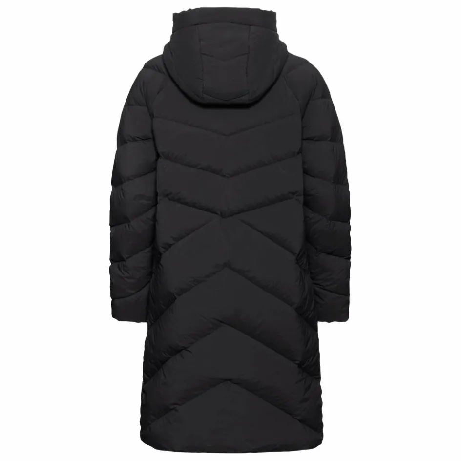 Das moderne Steppmuster unterstreicht den leicht taillierten Schnitt und sorgt für eine figurbetonte Silhouette. Die hochbauschige Füllung aus zertifizierten Daunen hält dich zuverlässig warm. Innenbündchen an den Ärmeln und ein hoher Kragen mit anschließender Kapuze tragen zusätzlich dazu bei, die Körperwärme zu bewahren. Außen schützt dich das atmungsaktive Material vor Wind und leichtem Niederschlag. Durch den elastischen Anteil im Gewebe und 2-Wege-Reißverschluss bleibt der Mantel dabei besonders bequem und passt sich deinen Bewegungen an – ideal für den Einsatz im winterlichen Alltag.