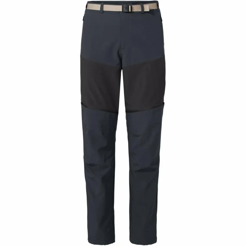 Der integrierte Gürtel lässt sich stufenlos auf die passende Weite einstellen und verfügt über eine flache Kunststoff-Schnalle, die unter einem Rucksack nicht stört. Vier Reißverschluss-Taschen bieten Platz für diverse Kleinigkeiten, die du schnell erreichen, aber auch sicher verwahren möchtest. Umweltfreundlich ist die Softshellhose natürlich auch: Das verwendete Polyester ist komplett recycelt, die Hose gehört zu Vaudes nachhaltiger Green Shape-Kollektion. Bei der Herstellung wurde somit auf Umweltfreundlichkeit und nachhaltige Materialien Wert gelegt.