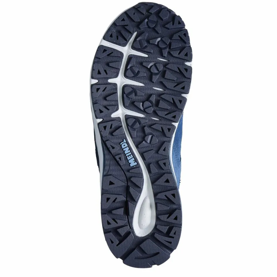 Die Meindl Comfort Fit Passform bietet auch breiteren Frauenfüßen ausreichend Platz. Der Zehenbereich ist großzügig geschnitten, während die Ferse stabilisiert wird. Das fördert einen stabilen Stand. Die ausgeprägte Spitzenrolle unterstützt die Vorwärtsbewegung beim Abrollen und die Absatzrolle sorgt für sanfte Dämpfung beim Auftreten.