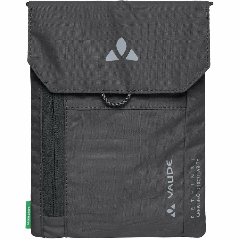Der Brustbeutel besteht fast vollständig aus PET-Polyester. Die orangefarbene Markierung bedeutet, dass der betroffene Teil aus einem anderen Material besteht. Um am Produktlebensende ein sortenreines textiles Recycling zu ermöglichen, kann der Teil mit der Markierung einfach abgenommen werden. Der Neckwallet ist mit einer PFC-freien DWR-Imprägnierung wasser- und schmutzabweisend ausgerüstet.