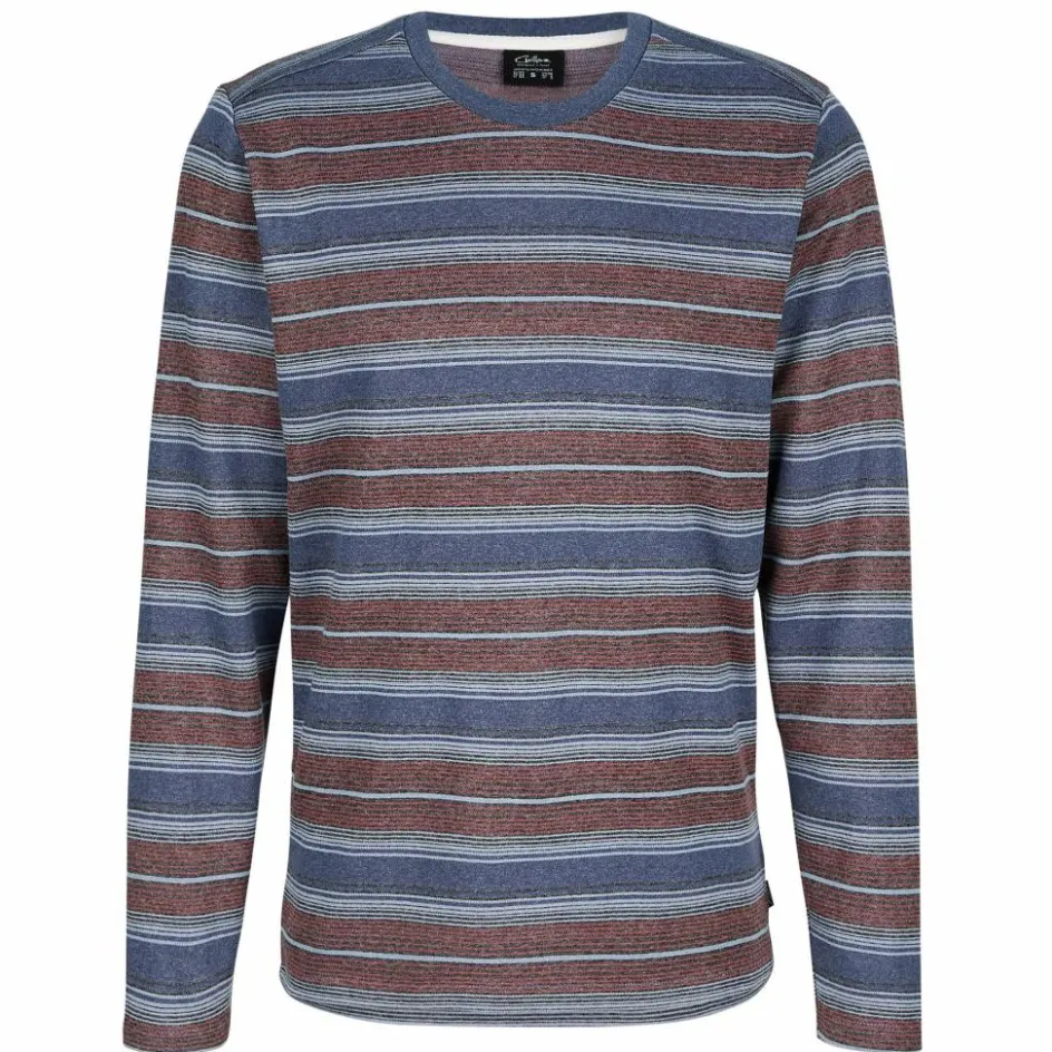 Das in warmen Farben gestreifte Langarmshirt ist aus 100% Baumwolle gefertigt und bietet einen angenehmen Tragekomfort.