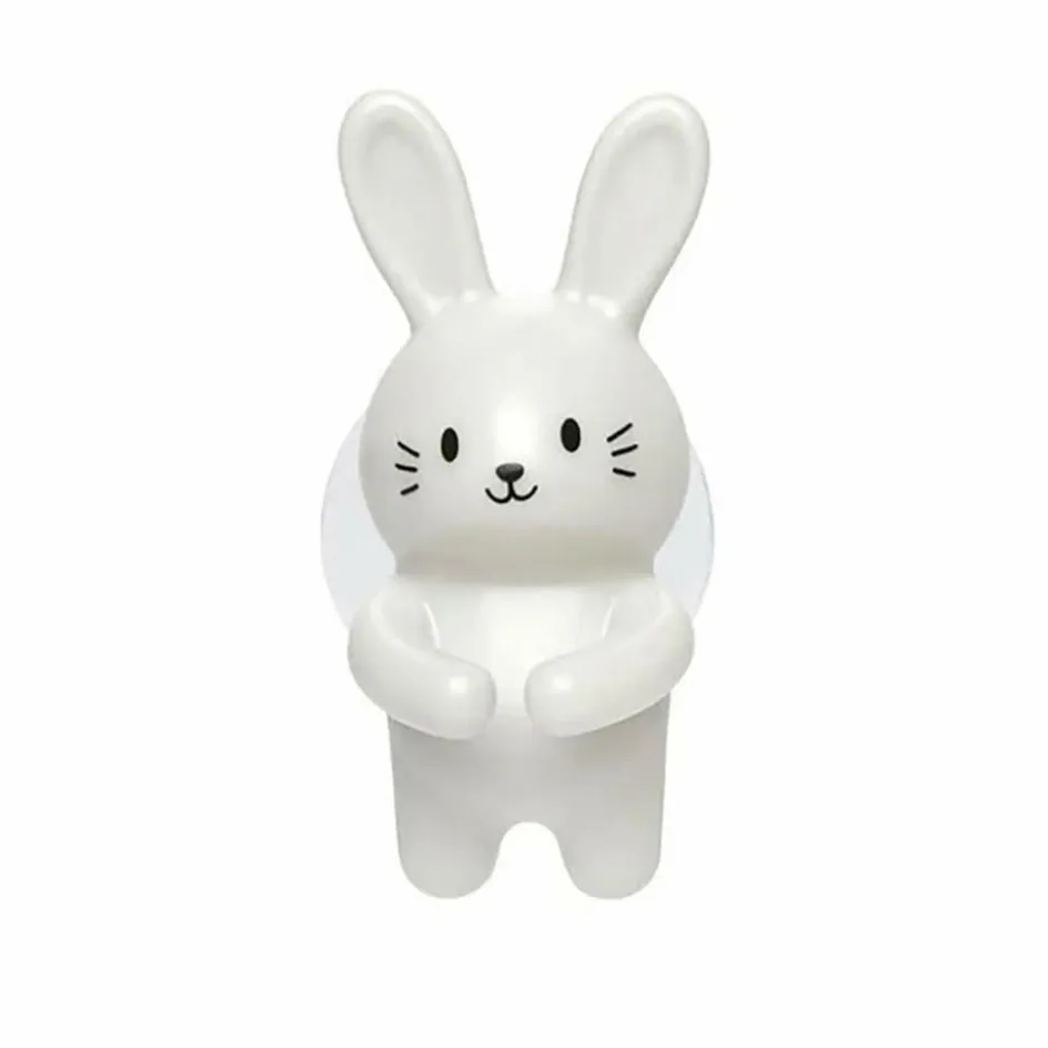 Universell für alle Hand-Zahnbürsten: Der Hase sitzt dank seines Saugnapfs fest an der Fliese und hält deine Zahnbürste in seinen weißen Pfoten. Praktisch für zuhause und unterwegs!