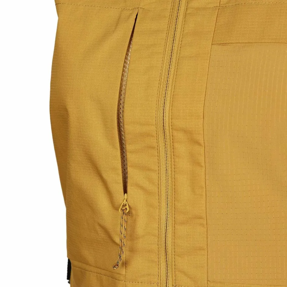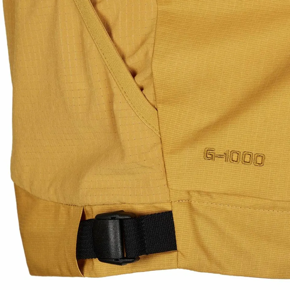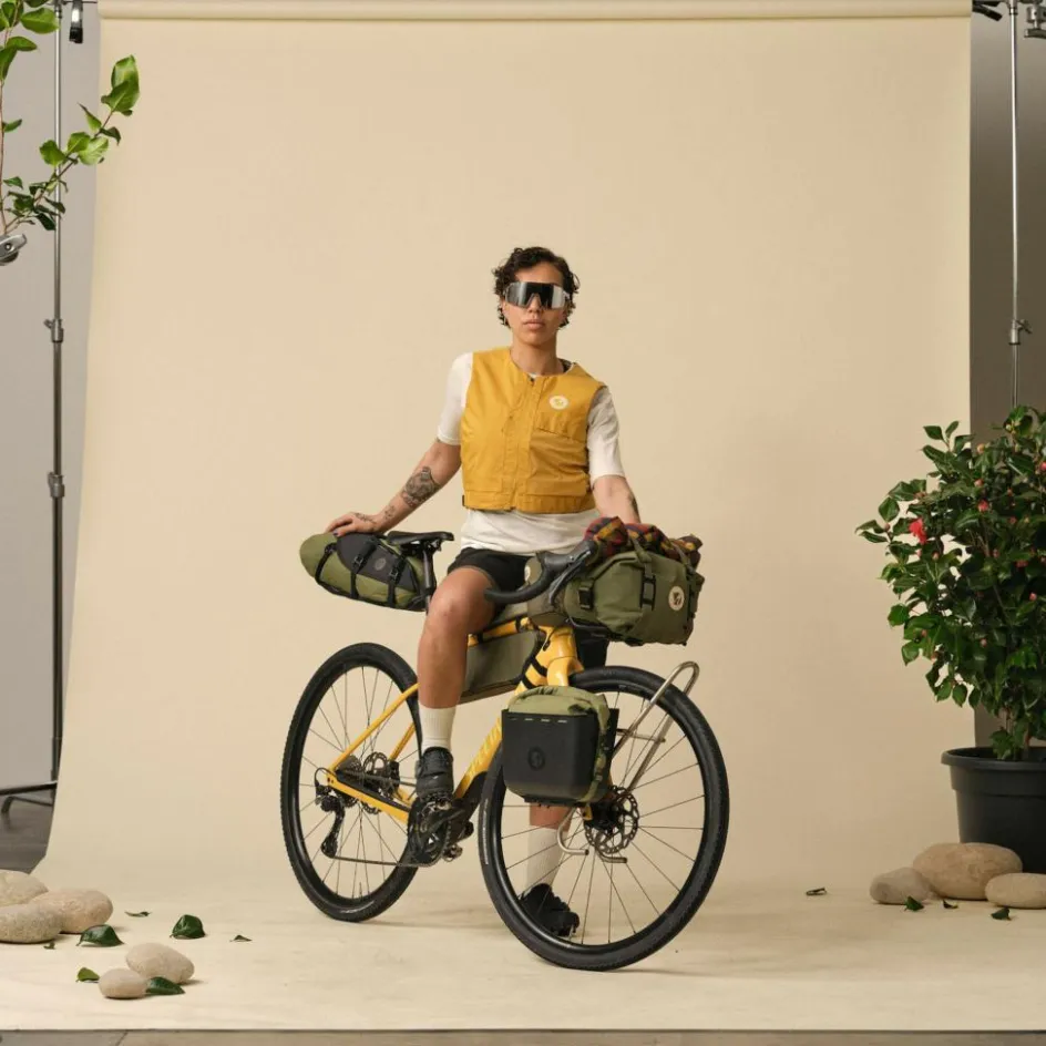 Für den Schutz vor auskühlendem Wind ist vorn das Fjällräven-eigene G-1000 Air Stretch Eco in Kombination mit einem Futterstoff verarbeitet. Willst du das G-1000-Material zusätzlich dichter bekommen, lässt es sich auch mit Greenland Wax bearbeiten. Die Westenrückseite ist aus einem Stretchmaterial mit Elasthan-Anteil gearbeitet. Insgesamt hat die S/F Gear Vest W einen hohen Recyclinganteil.